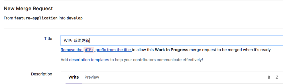 在发起合并请求时,开发者通过打上’WIP(仍在进行中)’状态标签让其他成员知道代码没有完成,从而阻止未完成的代码合并到其他的代码中