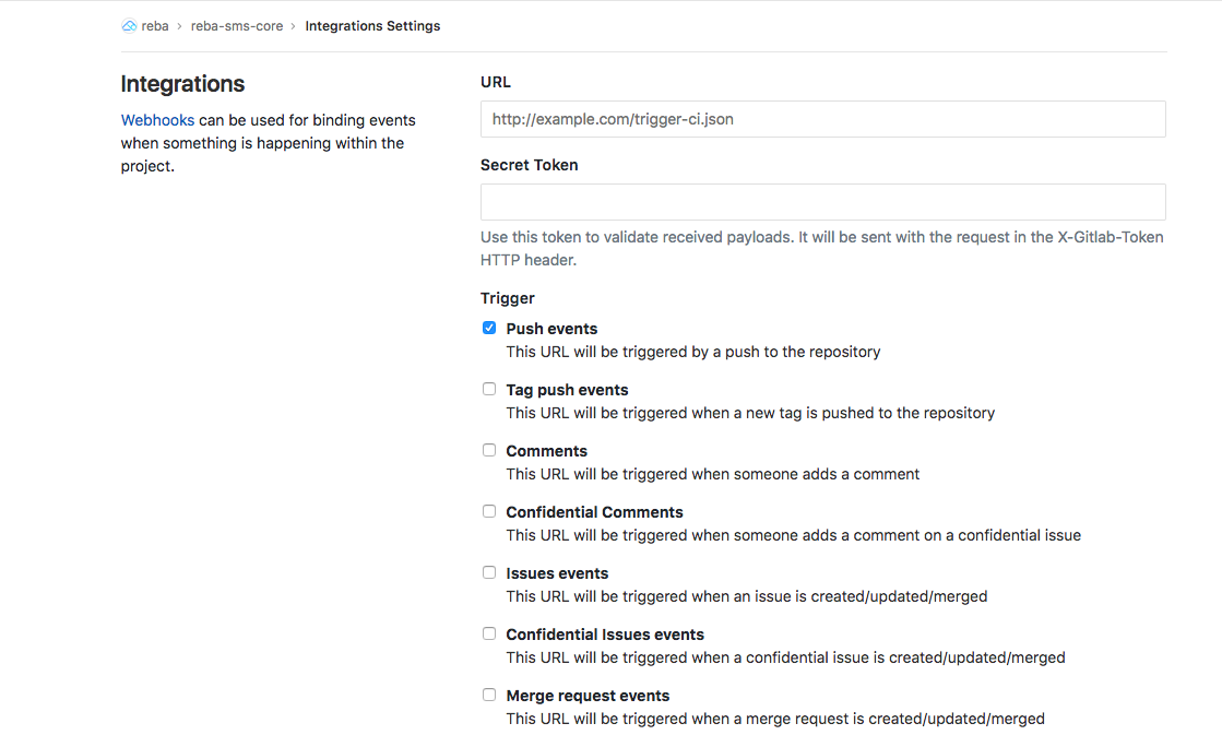 在gitlab中一般会搭配jenkins使用,目的是在提交代码至指定分支或tag后,自动触发jenkins自动构建项目并发布到测试环境,从而避免重复性的人肉部署,实现持续集成