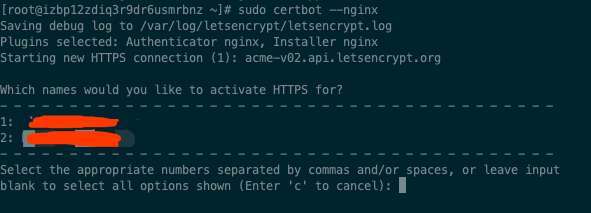 第一步会读取nginx中配置的域名 让你选择一个或多个